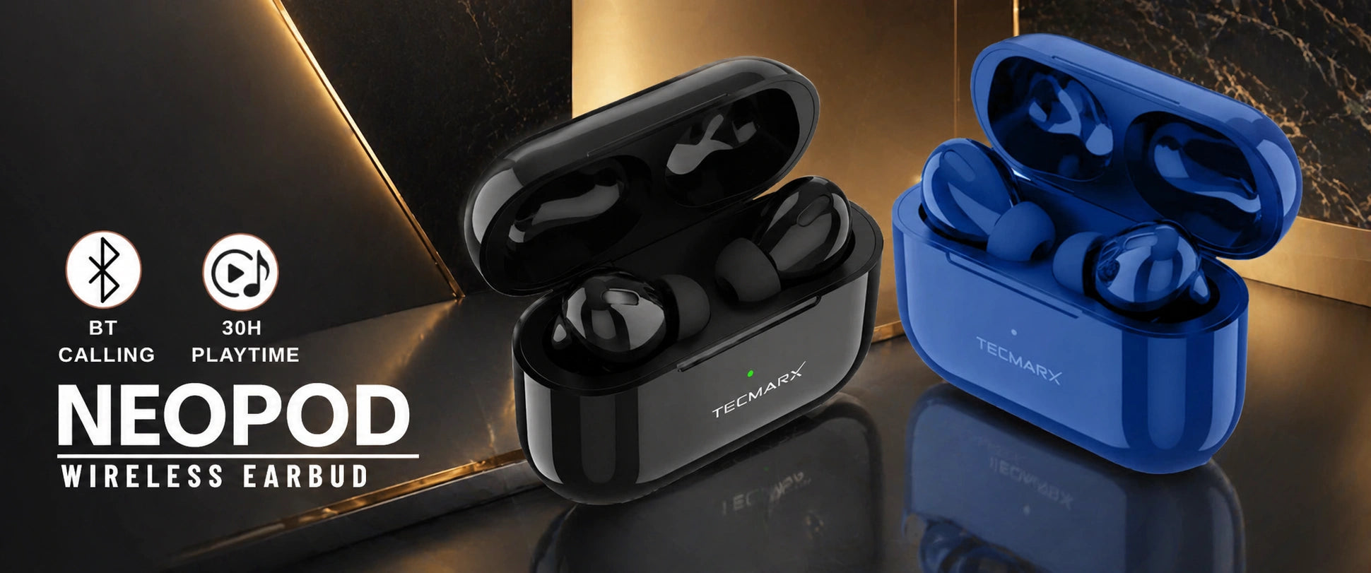 TecMarx Alpha Smart Display TWS Bluetooth Earbuds | 40 Hr | Powerful Bass | IPX Water Resistant | Numeric Indicator