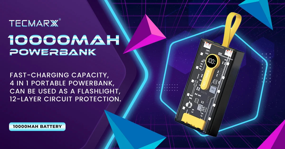 TecMarx 10k Transparent PowerBank | Digital Indicator | Emergency Light | Your Companion