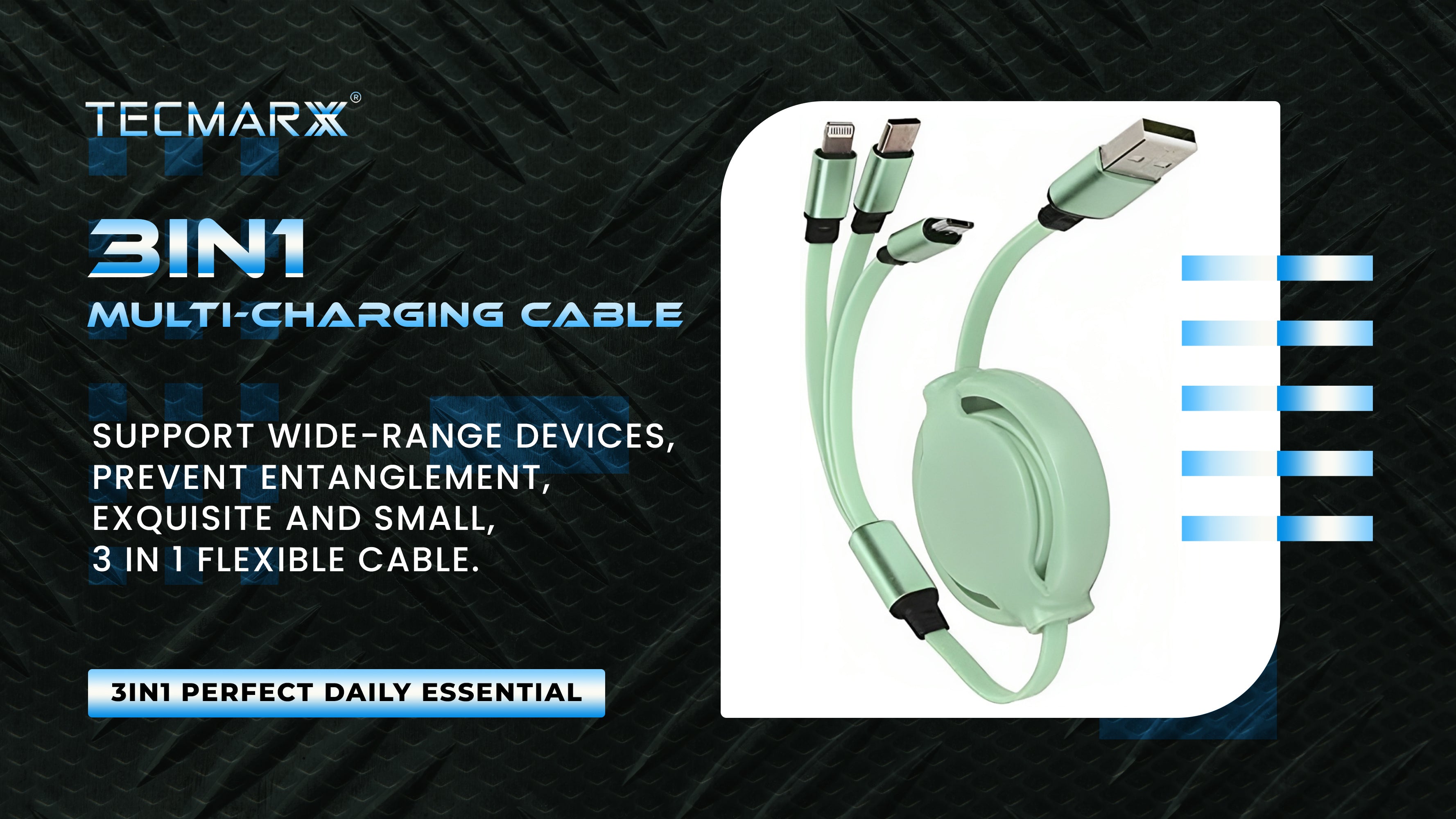 TECMARX 3in1 Retractable Cable || 3A output with Multiple Ports || High Durability