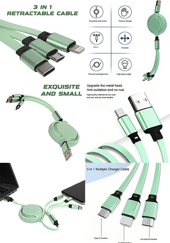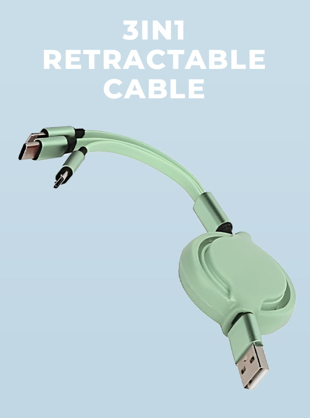 This 3-in-1 Retractable multifunctional cable caters to various devices, With an output of 3A this cable can solve all your charging needs..