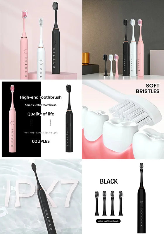 The TecMarx Smart Electric Adult Toothbrush offers superior oral care with soft bristles designed for gentle yet effective cleaning. Its IPX water-resistant design ensures safe use in the shower, while advanced technology promotes healthier gums and teeth. Rechargeable and easy to use, this toothbrush guarantees a fresh, professional clean every day.