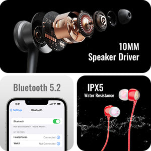 TecMarx BLAZE100 Bluetooth Neckband | 30 Hr Play Time | Balanced Sound | IPX Water Resistant