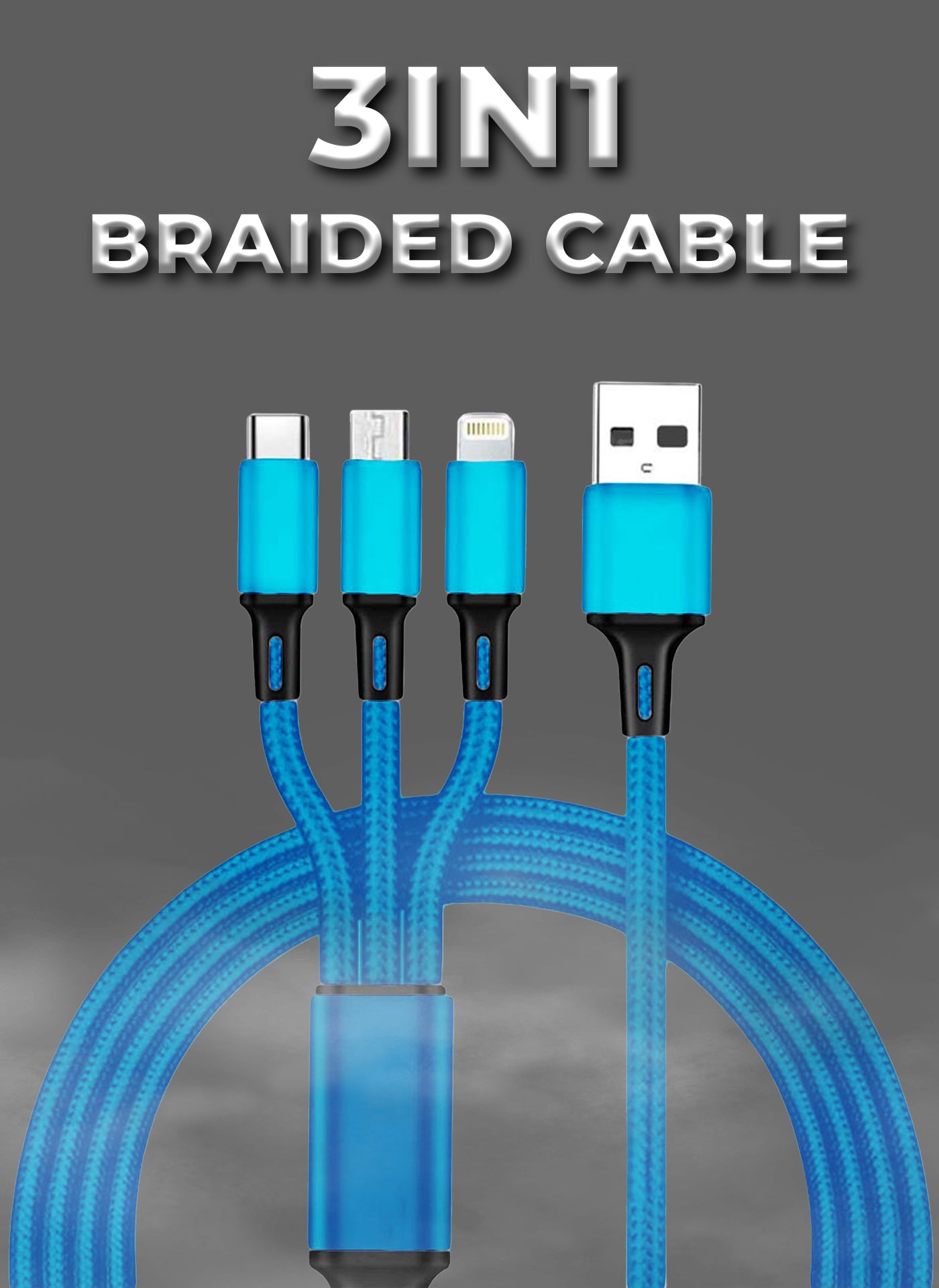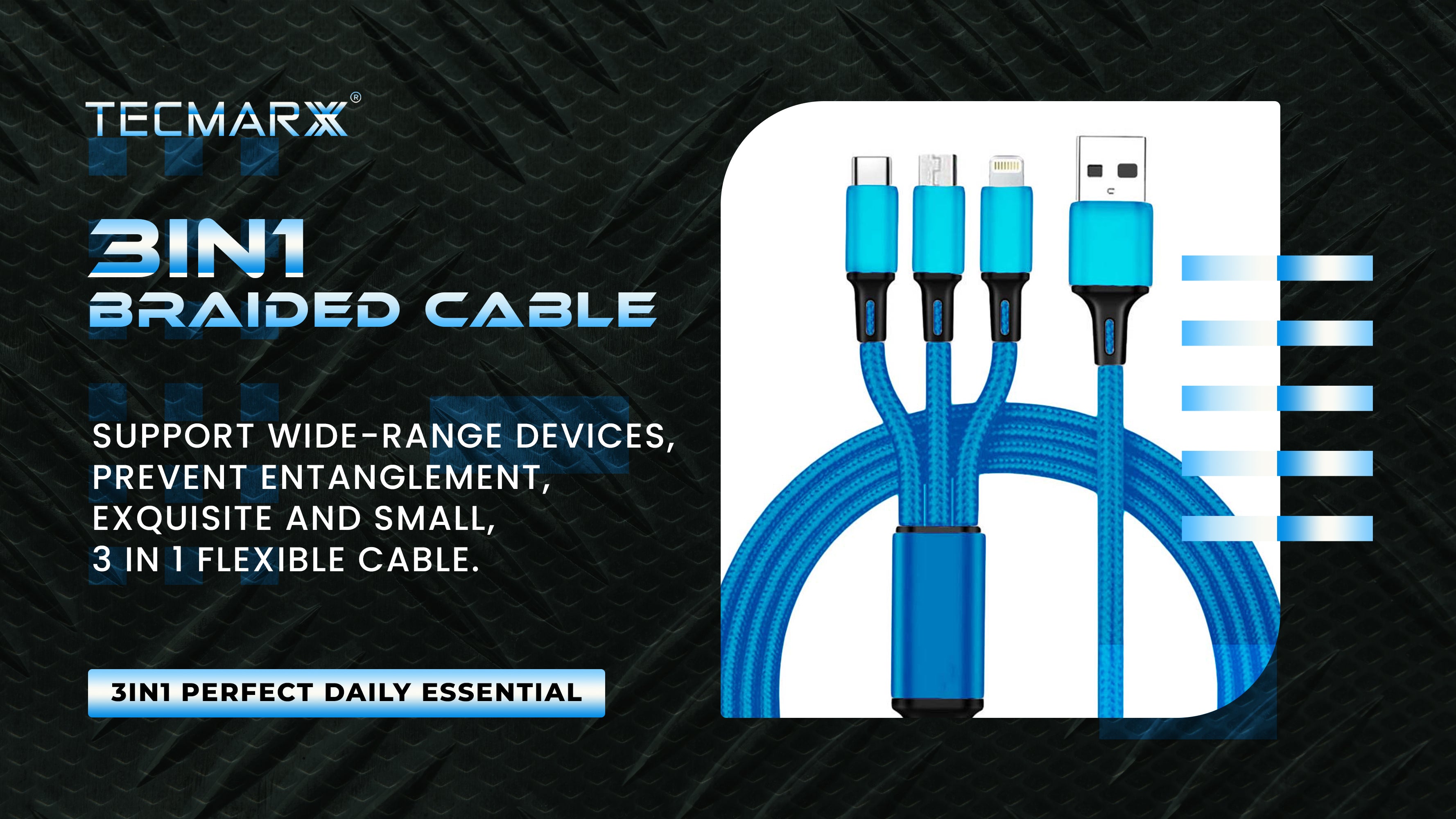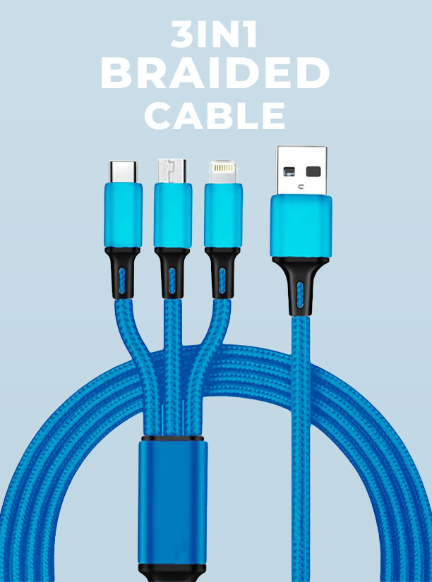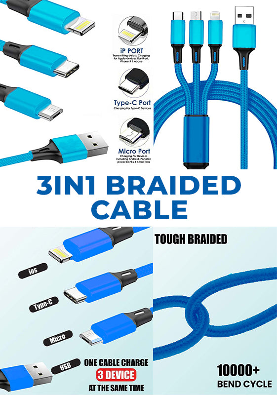 Simplify your tech life and conquer any charging challenge with the TecMarx 3-in-1 Braided Cable!