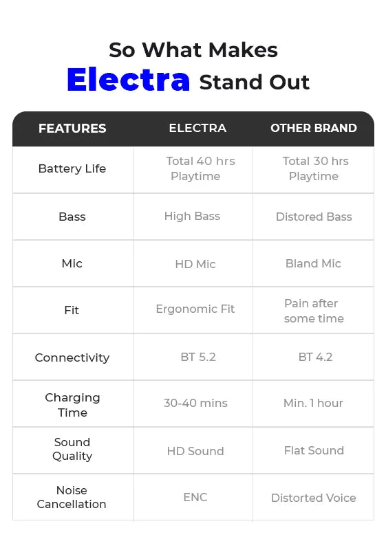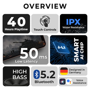 TecMarx Electra Bluetooth Earbuds are engineered for those who demand high-quality audio and extended performance. With an impressive 40 hours of playtime, these earbuds ensure you can enjoy your music, podcasts, and calls all day without worrying about recharging. The powerful audio delivers deep bass, clear mids, and crisp highs, providing a truly immersive listening experience.