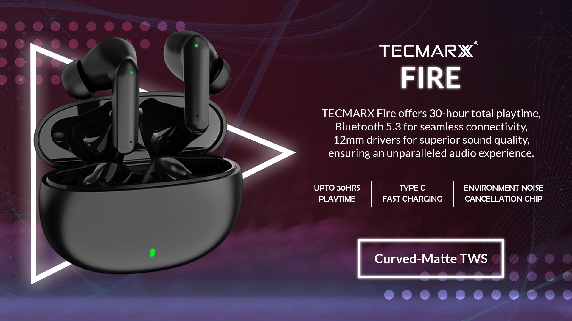 Introducing the TecMarx Fire TWS Bluetooth Earbuds: Ignite your audio experience with these cutting-edge earbuds! Designed for music enthusiasts and active lifestyles, the Fire TWS delivers exceptional sound while ensuring comfort and durability.