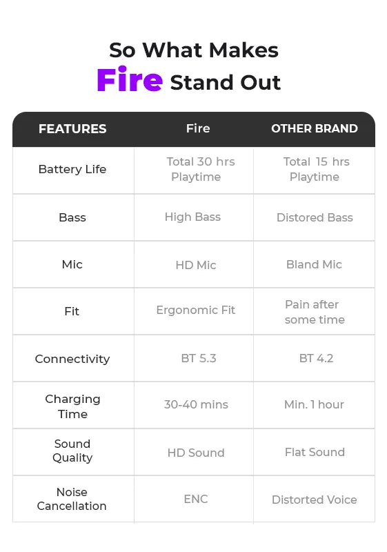 - 35 Hours of Nonstop Playback: Whether you’re on a marathon call or grooving to your favorite tunes, the Fire TWS keeps the beats alive with an impressive 35-hour battery life.
