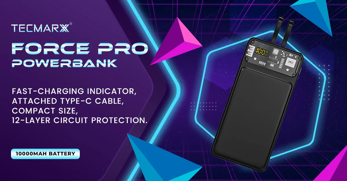 Take control of your battery life and conquer any adventure with the TecMarx Force Pro 10000mAh Power Bank!