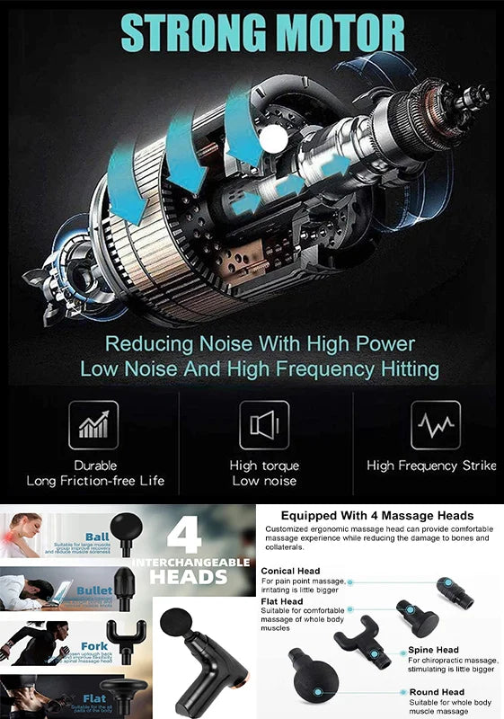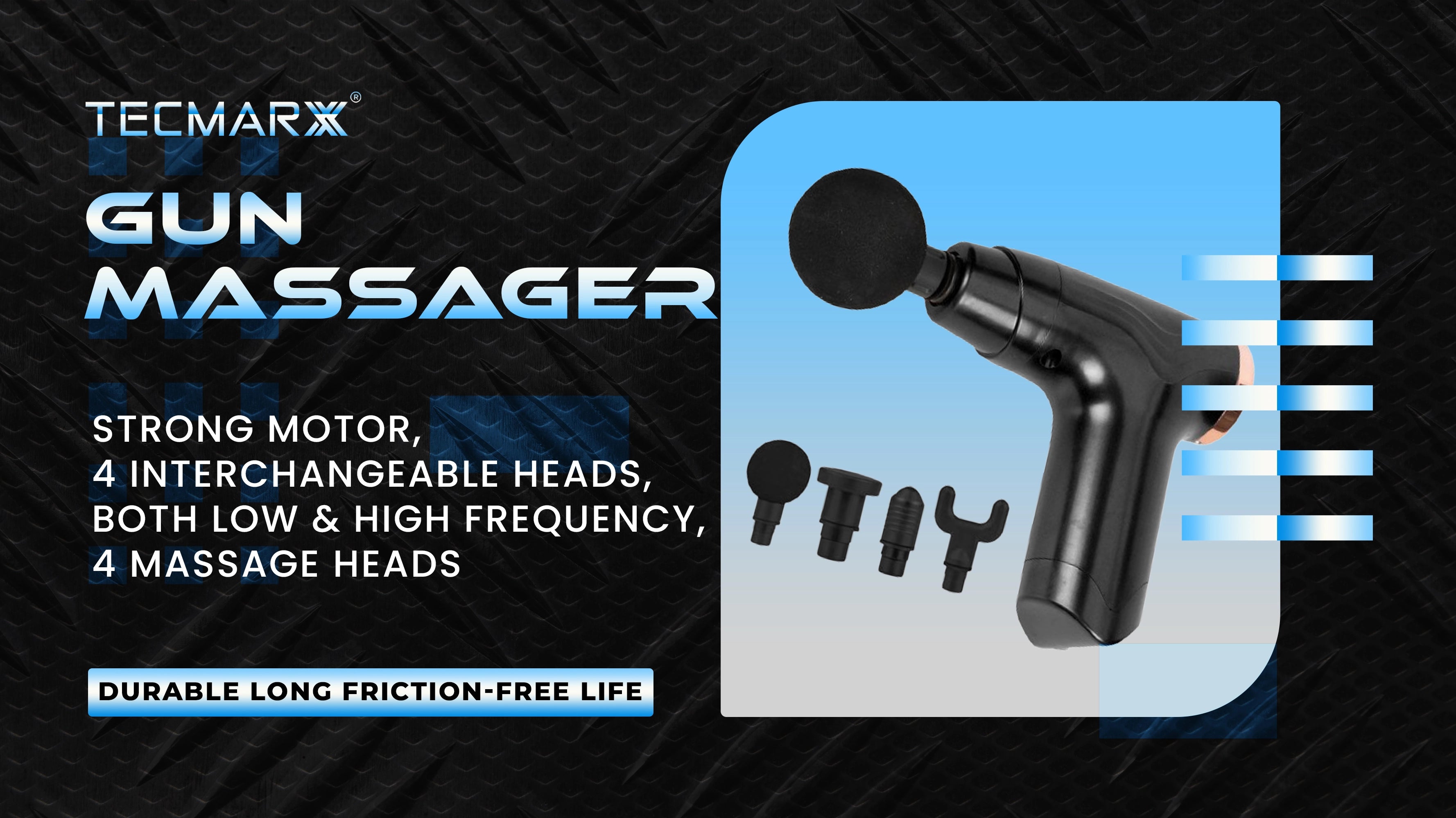 TECMARX Gun Massager | Durable Pain Reliver| 4 Massage Heads | with High Power Low noise