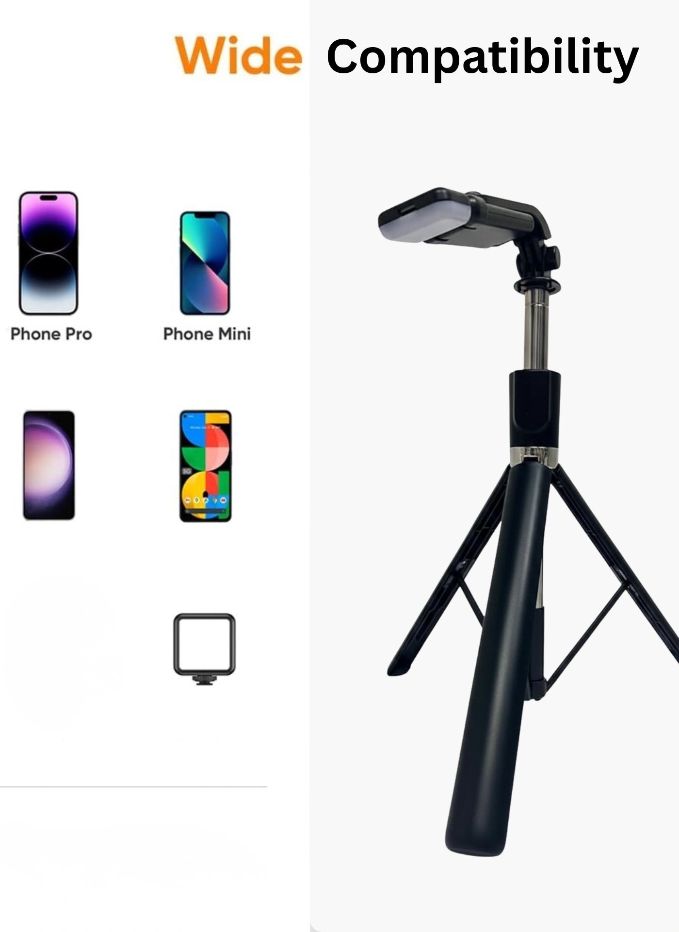 Reinforced Tripod Base: Features extra-wide legs with anti-slip mats to ensure a secure, shake-free foundation for your smartphone.