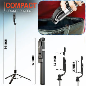 Massive 5FT Extension: Telescopic rods expand up to 60 inches (5 feet), providing the perfect eye-level height for professional shots.