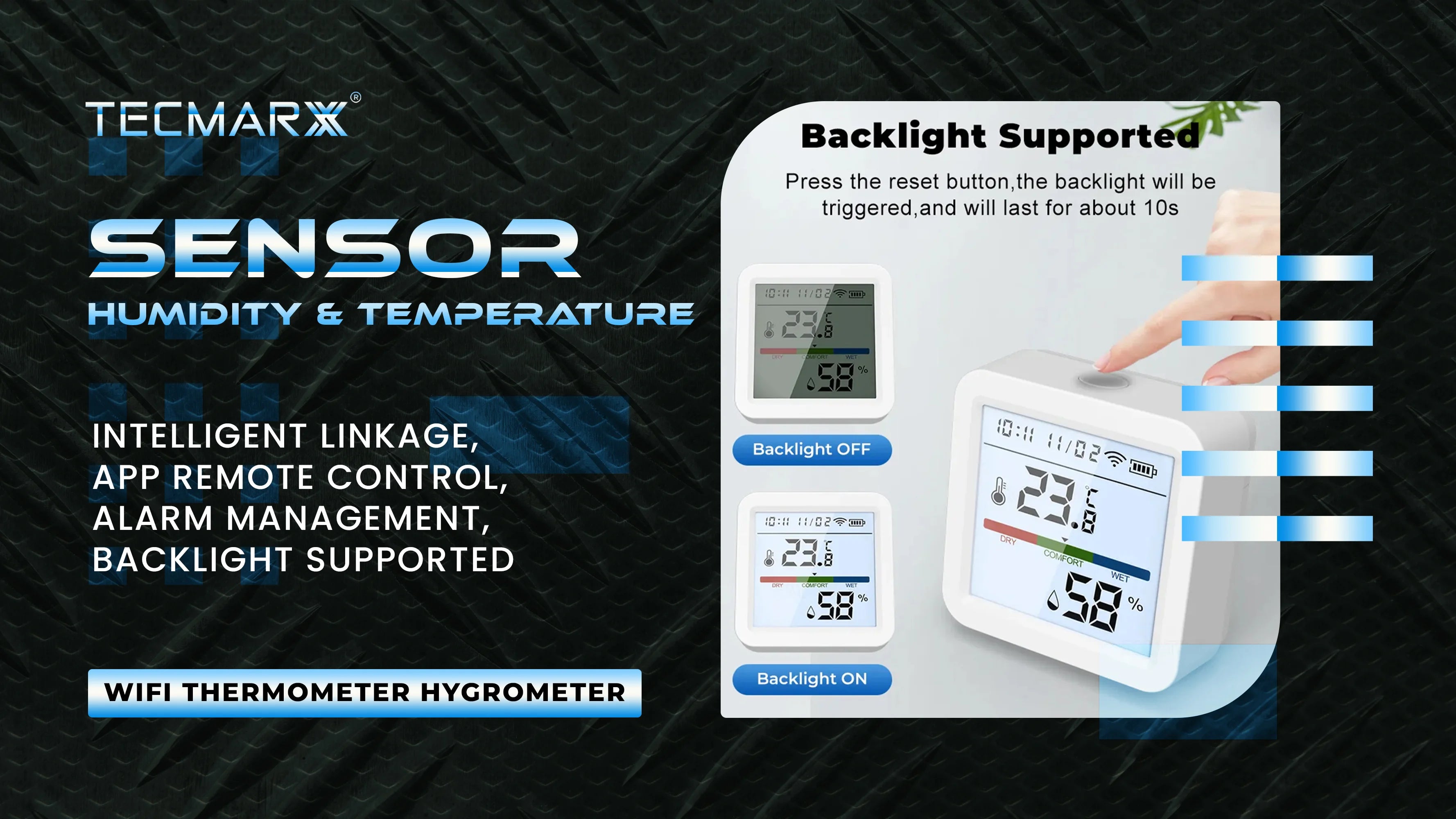 Monitor and manage indoor climate effortlessly with the TecMarx WiFi Thermometer. This smart humidity and temperature sensor is compatible with Home Assistant and voice control, offering real-time data and easy setup for optimal comfort in your home.