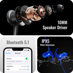 TecMarx Jazz 200 Bluetooth Neckband | 40 Hr Play Time | Powerful Bass | IPX Water Resistant
