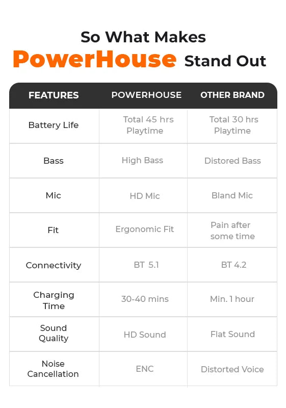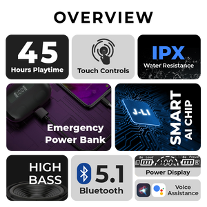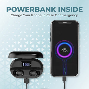 Elevate your audio experience with the TecMarx PowerHouse Bluetooth Earbuds. These aren't just earbuds; they're your ultimate audio and power companion. Enjoy an incredible 45 hours of playtime, ensuring your music, podcasts, or calls never falter. The balanced sound profile delivers rich bass and clear highs, immersing you in every note. But that's not all - PowerHouse doubles as a portable power bank, rescuing your phone from low battery anxiety. Designed for an active lifestyle, the IPX water-resistant design fearlessly tackles sweat and splashes. With ultra-comfortable earbuds and seamless Bluetooth connectivity, PowerHouse is more than just a pair of earbuds; it's your go-to accessory.