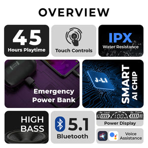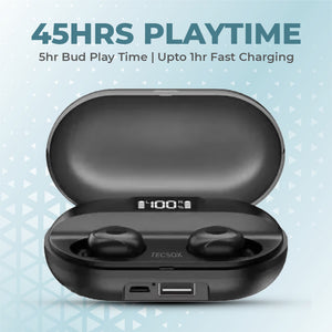 TecMarx Power House Bluetooth Earbuds | 45 Hr Play Time | Balance Sound | Instant Powerbank | IPX Water Resistant