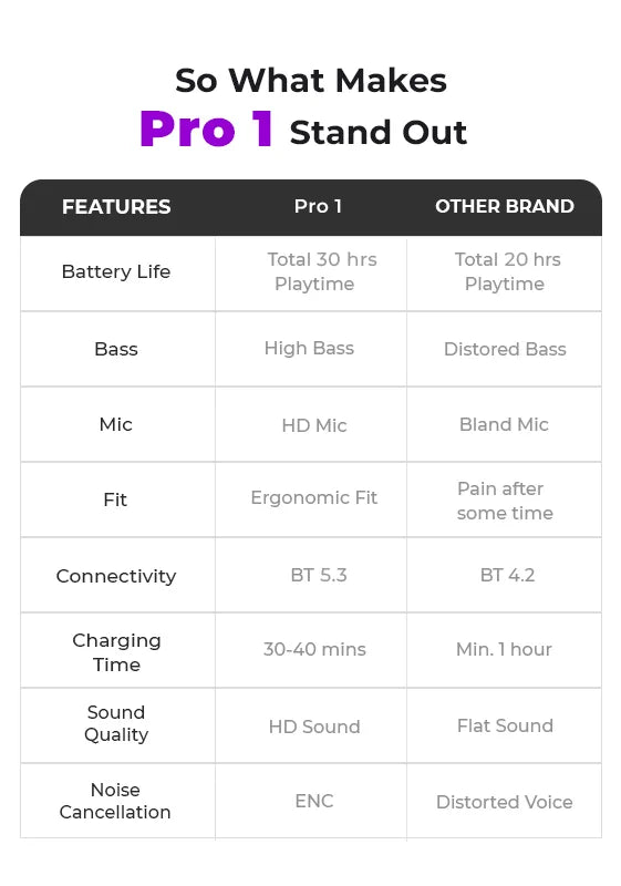 Experience superior sound with TecMarx Pro 1 Bluetooth Earbuds. Enjoy 30 hours of playtime, crystal-clear calls with the built-in ENC mic, and enhanced voice clarity with Embrace Voice technology. Perfect for workouts and outdoor activities, these IPX water-resistant earbuds offer a comfortable fit and stable Bluetooth connectivity. Choose TecMarx for unmatched audio quality and durability.