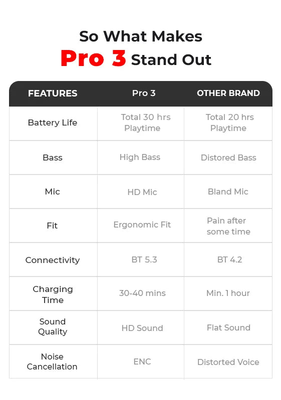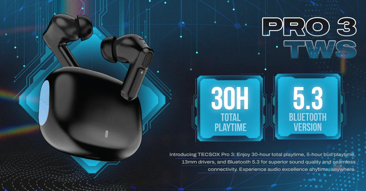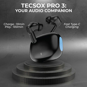 TecMarx Pro 3 Bluetooth Earbuds deliver exceptional audio with 30 hours of playtime and Type C fast charging for quick power-ups. These earbuds are IPX water-resistant, making them ideal for any activity. Enjoy seamless connectivity and superior sound quality with TecMarx Pro 3 – your perfect companion for music on the go.