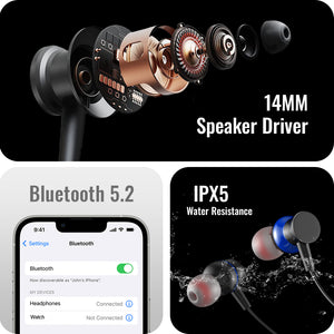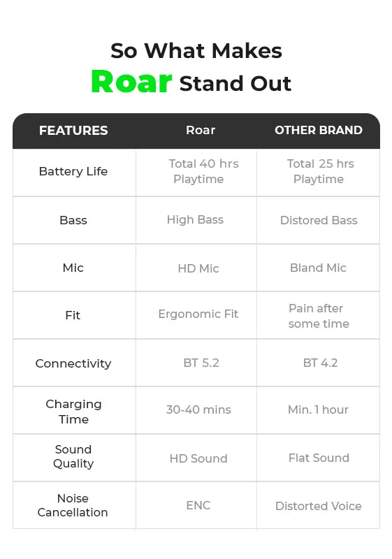 Discover immersive sound with the TecMarx Roar Bluetooth Neckband. Engineered for long-lasting enjoyment, it boasts an impressive 40 hours of playtime, keeping your music going all day and night. Immerse yourself in rich audio with the powerful 14mm drivers, delivering deep bass and crystal-clear highs. The advanced ENC (Environmental Noise Cancellation) technology ensures clear calls, even in noisy environments. Designed for an active lifestyle, Roar is IPX5 water-resistant, perfect for workouts or outdoor adventures. The comfortable neckband design provides a secure fit, while the intuitive controls offer effortless music management.