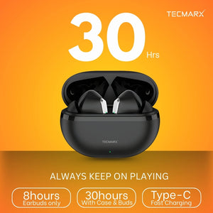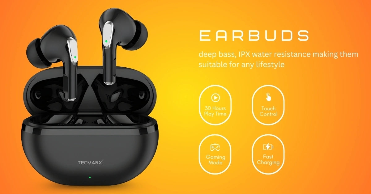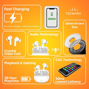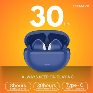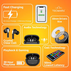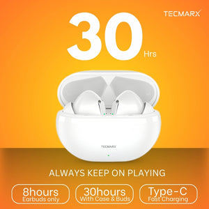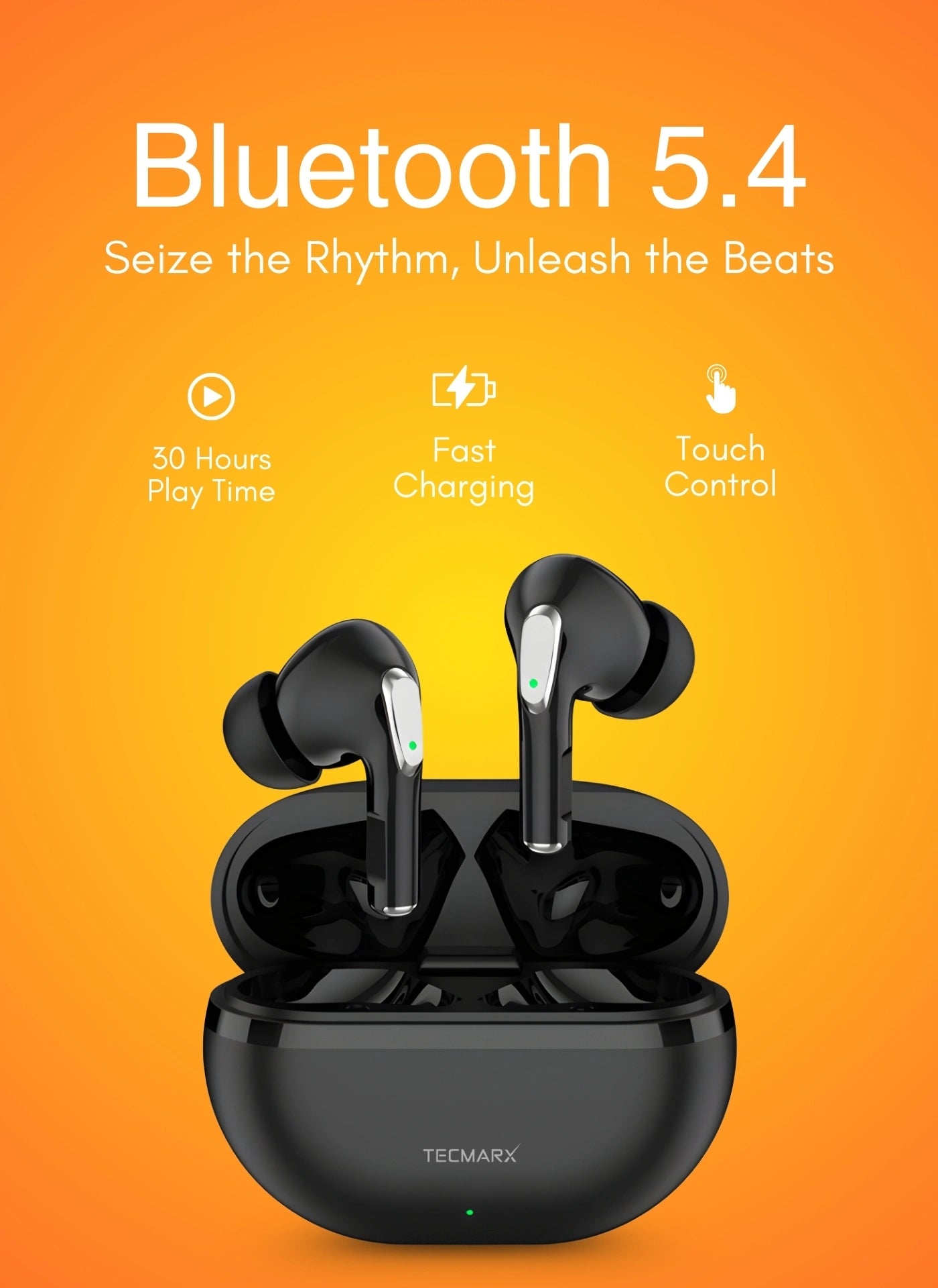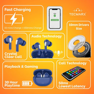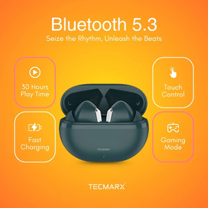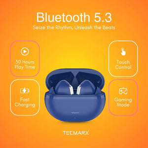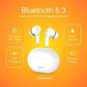 TecMarx Royal 351 Bluetooth Earbuds | 30 Hr Playtime | Balance Sound | IPX Water Resistant