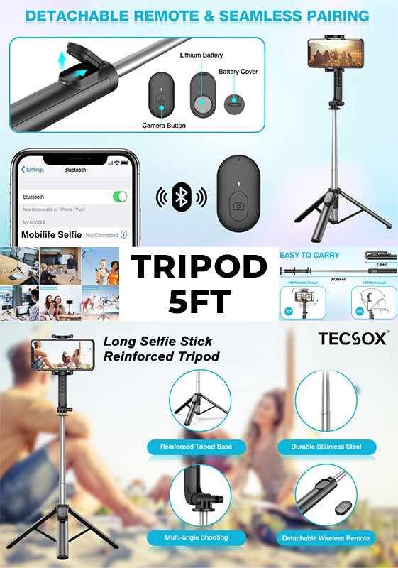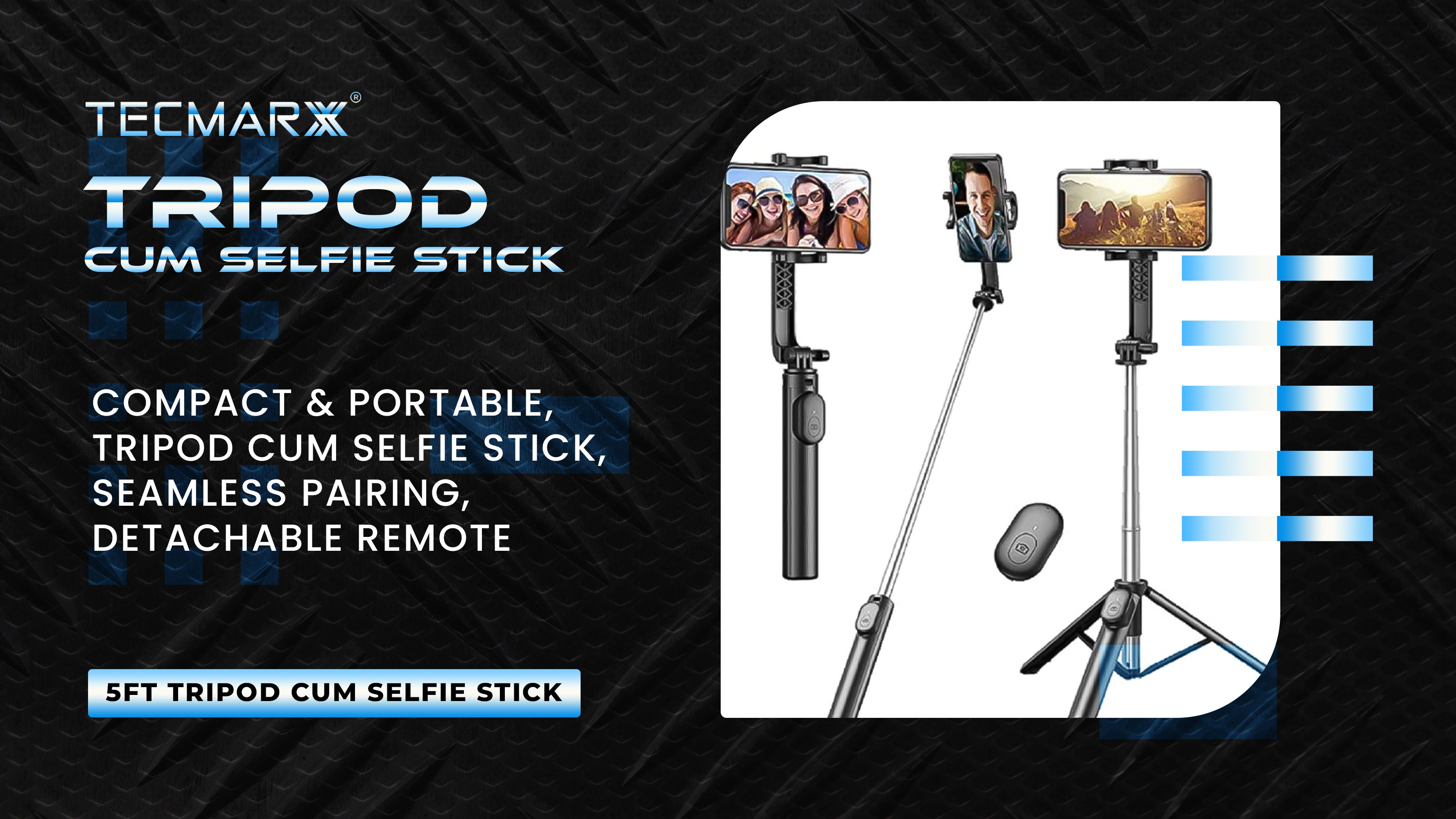 TECMARX Tripod cum Selfie Stick || Extendable upto 5.5ft || BT 5.3 V with portable Remote