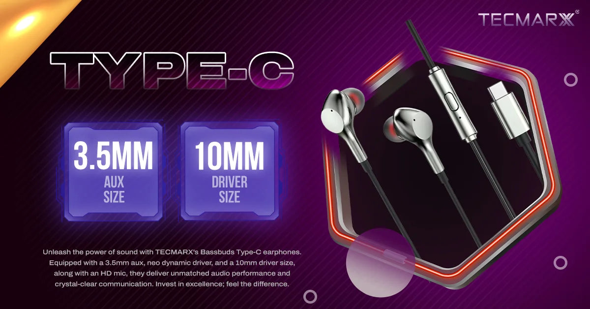 Elevate your audio experience and conquer everyday tasks with the TecMarx Type-C Wired Earphones!
