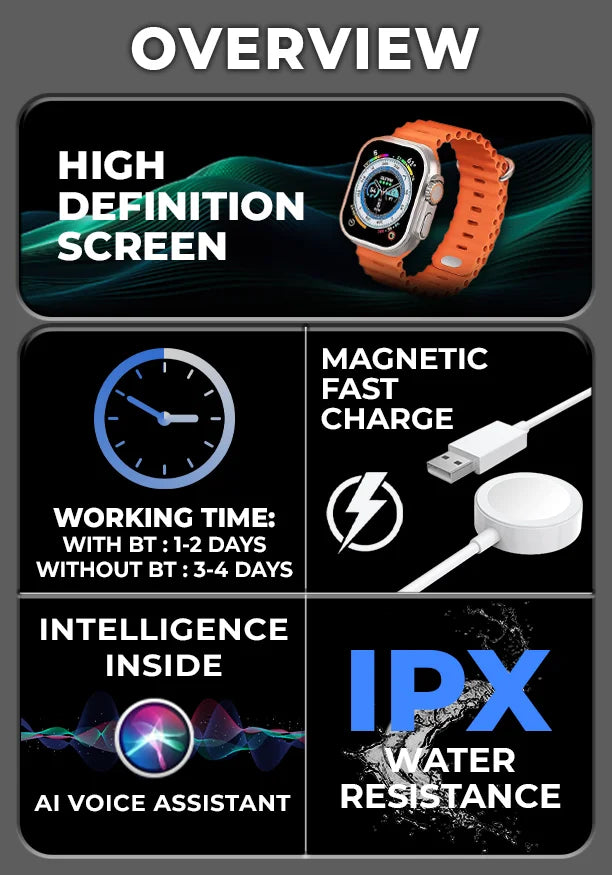 Introducing the TecMarx Ultra Watch – where innovation meets sophistication for an unparalleled smartwatch experience. With a brilliant 2.19-inch display, immerse yourself in a crystal-clear visual experience that brings your data and notifications to life.