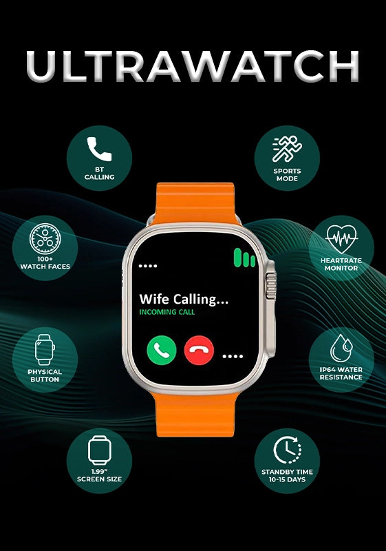 2'19 Inch Ultra Watch with 100 plus sports mode, BT Calling, HD Display.