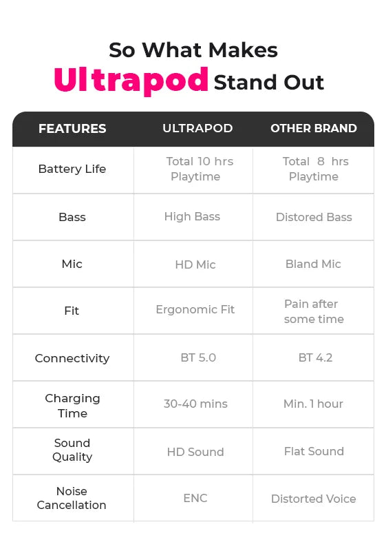 TECMARX Ultrapods are equipped with the digital display and its unique design comes in 5 different color. These futuristic earbuds are equipped with 13mm Driver and Bluetooth 5.3V. Its HD MEMC mic provides clear calling facility in noisy environment too.