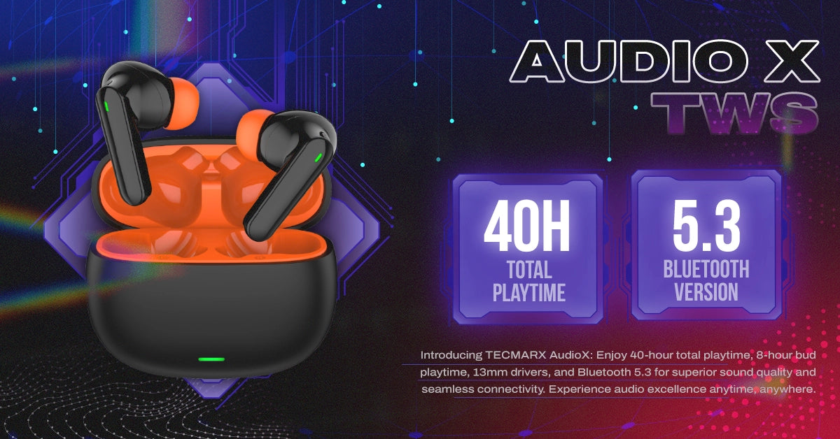 Experience the blend of style, performance, and durability with TecSox AudioX. Elevate your daily life with these high-performance Bluetooth earbuds.