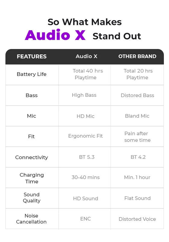 Discover superior sound and lasting comfort with TecSox AudioX Bluetooth Earbuds. Designed for true audio enthusiasts, these earbuds deliver powerful bass and crystal-clear highs that elevate your listening experience. With up to 40 hours of playtime, you can enjoy your favorite tunes all day and beyond, whether you're working out, commuting, or relaxing.
